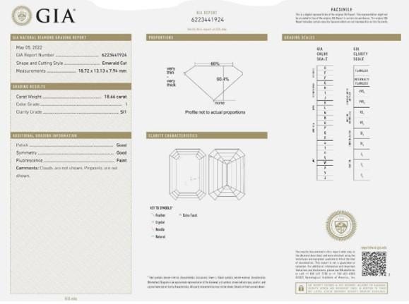 Diamond Weight: 18.66 Carats (GIA Certified)