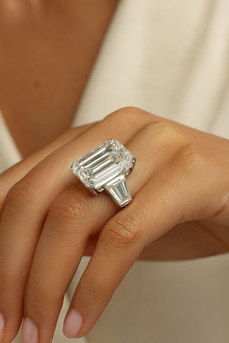 Timeless emerald-cut silhouette enhances elegance and finger length