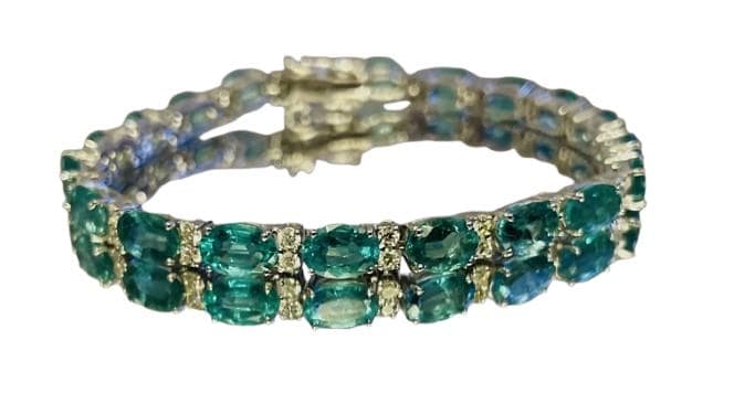 A breathtaking expression of elegance and natural beauty, this exquisite bracelet features 14.5 carats of natural emeralds, gracefully accented with brilliant natural diamonds, all expertly set in solid 18K gold. Designed to embody luxury and timeless style, this piece is perfect for collectors and those seeking a truly special statement bracelet.