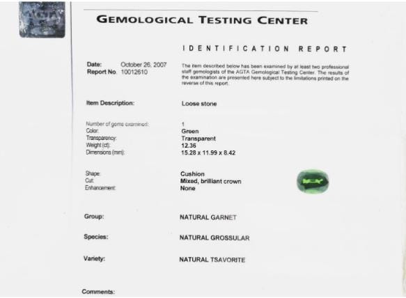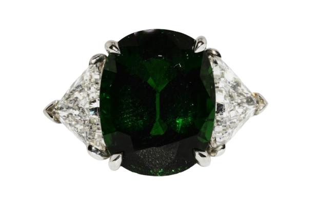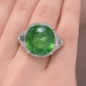 💚 Platinum 15.59 Ct AGTA & GIA Certified Natural Tsavorite & Diamond Ring 💚