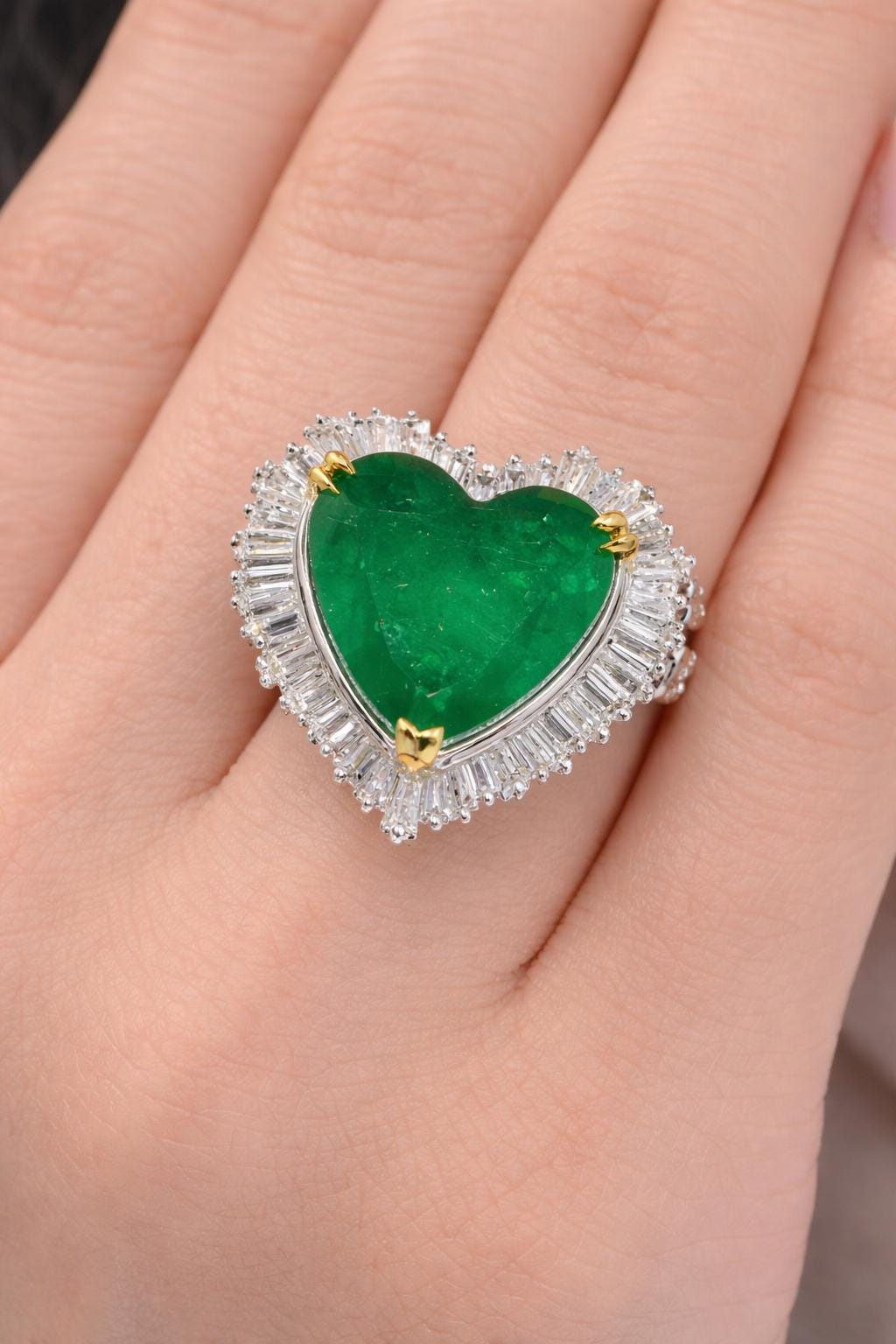 💚 $100,000 | 23.60 Ct Natural Emerald & Diamond Heart Ring in Platinum & 18K Yellow Gold 💚