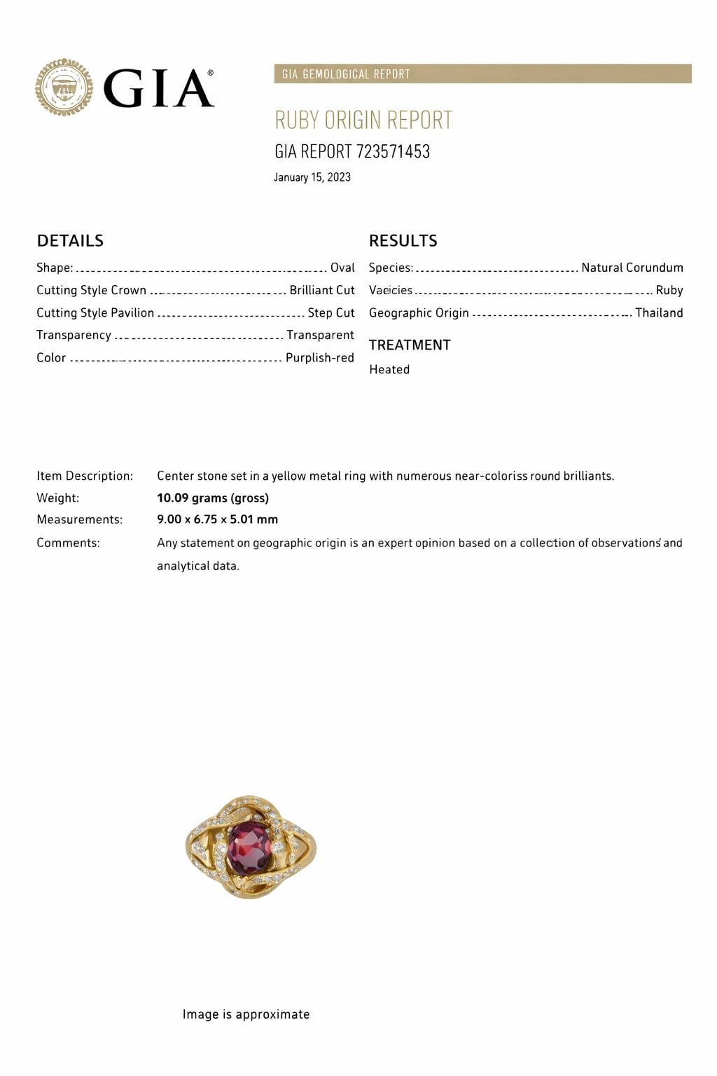 Bold, elegant, and undeniably luxurious, this stunning cocktail ring showcases a natural ruby, beautifully accented by sparkling natural diamonds, all masterfully crafted in solid 18K yellow gold. Certified by the Gemological Institute of America (GIA), this ring offers both visual impact and complete buyer confidence.