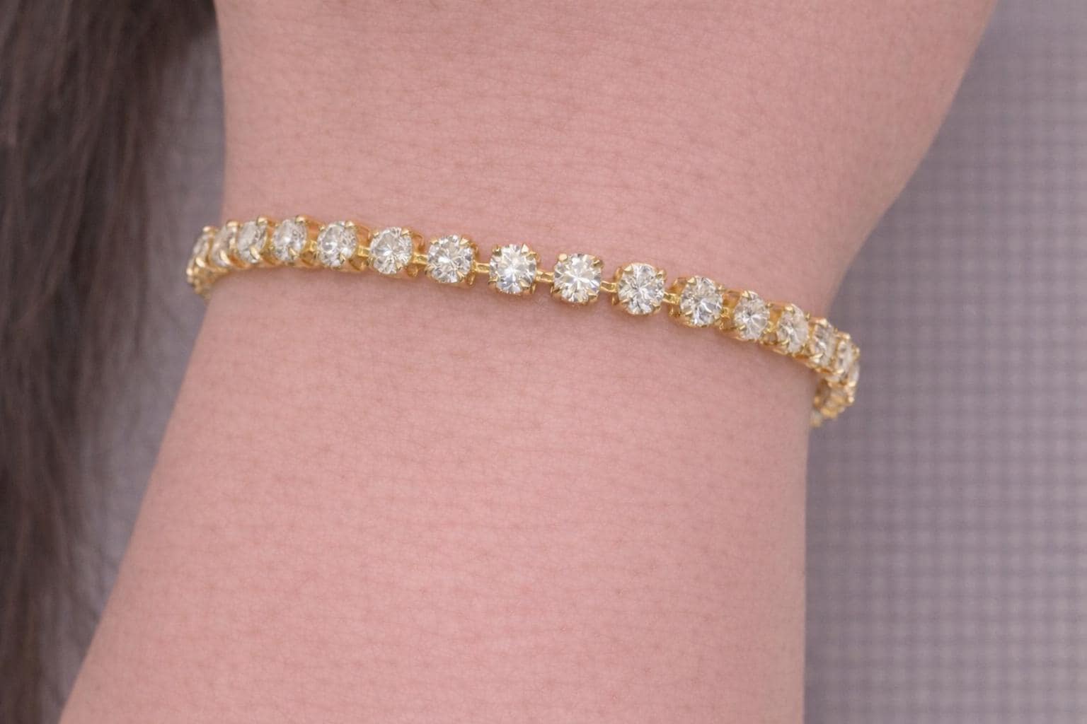 Each diamond is carefully selected and expertly set to maximize brilliance and fire, creating a continuous shimmer that wraps gracefully around the wrist. The rich warmth of 18K yellow gold enhances the diamonds’ natural beauty, offering a classic yet powerful statement of luxury.