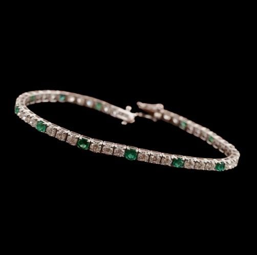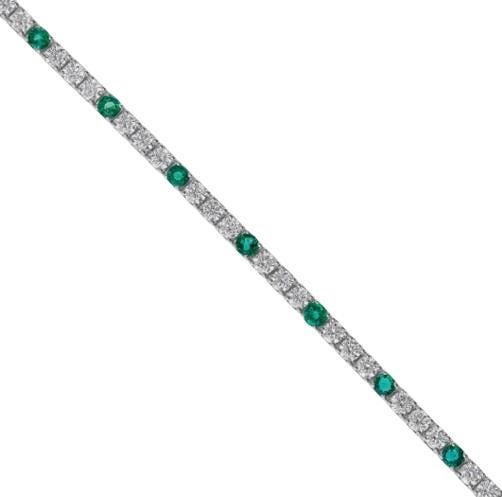With a total carat weight of 5.89 carats, each gemstone is carefully selected for vibrant color, clarity, and sparkle. The emeralds display the deep, lush green hue Zambian stones are renowned for, while the diamonds add radiant brilliance and contrast. Set in a sleek white gold tennis design, this piece drapes gracefully on the wrist for exceptional comfort and wearability.