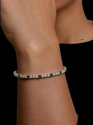 • Gemstone: Natural Zambian Emerald • Diamond Quality: Natural Diamonds (SI/H) • Total Carat Weight: 5.89 TCW • Metal: Solid 18K White Gold • Style: Tennis / Line Bracelet • Setting: Secure, handcrafted prong setting • Condition: Brand New