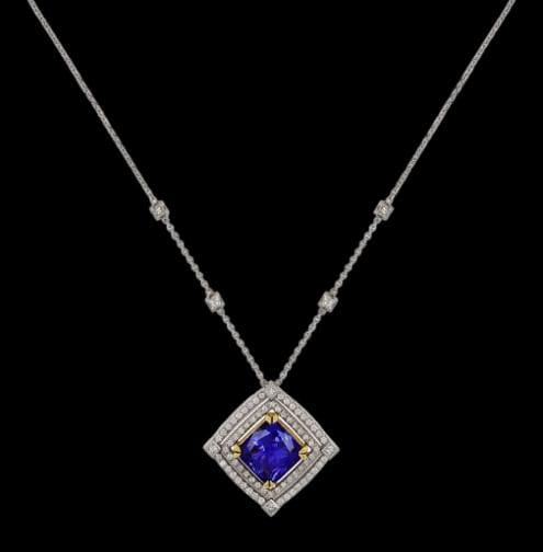 • Gemstone: Natural Tanzanite (Tanzania Origin) • Cut: Princess Cut • Color: Violet / Blue • Total Carat Weight: 16.38 CT • Metal: Solid 18K White & Yellow Gold • Style: Luxury Pendant / Fine High Jewelry • Setting: Secure handcrafted setting • Condition: Brand New
