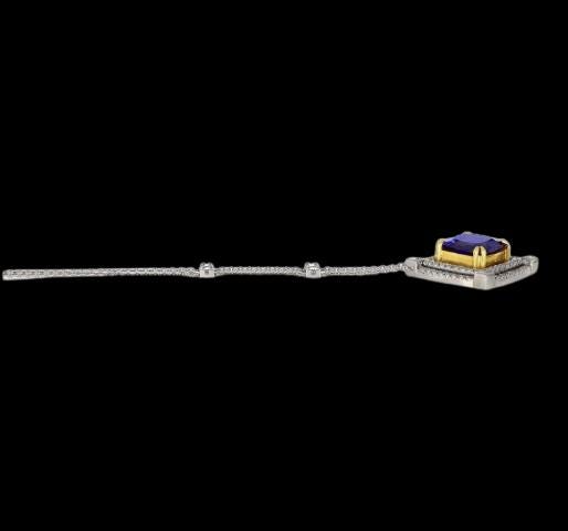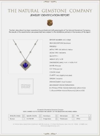 Experience extraordinary elegance with this breathtaking Princess-Cut Violet Tanzanite Necklace, showcasing a magnificent 16.38 carat natural Tanzanian tanzanite. Expertly set in a striking combination of solid 18K white and yellow gold, this necklace is a true statement of luxury, rarity, and refined craftsmanship.