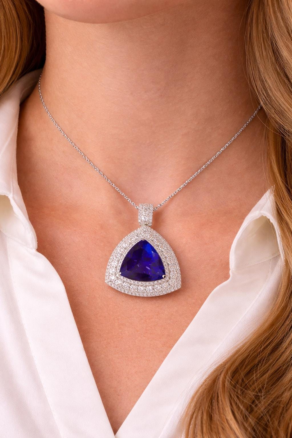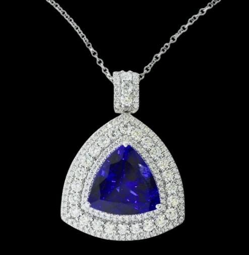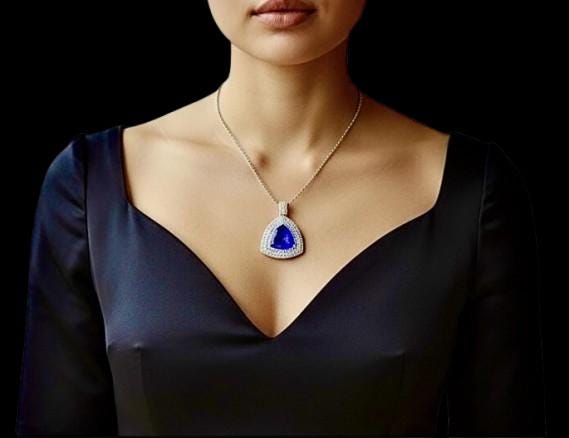 • Gemstone: Natural Tanzanite (Tanzania Origin) • Color: Very Fine Deep Vivid Blue • Carat Weight: 12.76 CT • Accent Stones: Natural Diamonds • Metal: Solid Platinum • Style: Luxury Pendant / Fine High Jewelry • Setting: Secure handcrafted diamond halo • Condition: Brand New