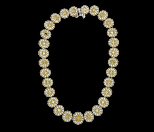 LARGE 38.7 CT White & Fancy Yellow Diamond Multi-Flower Necklace in 18KT Two-Tone Gold