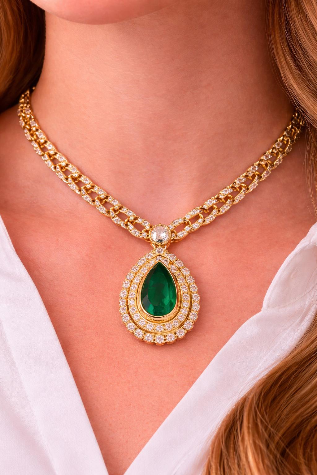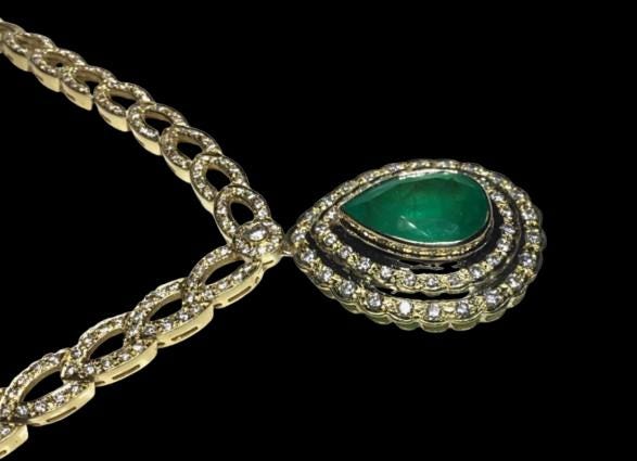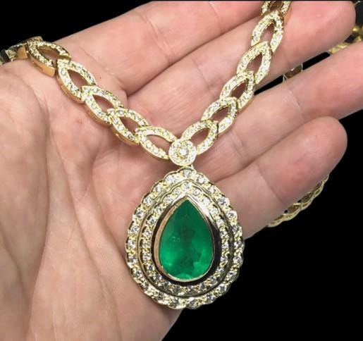 A rare and extraordinary treasure, this Estate Colombian Emerald and Diamond Necklace is masterfully crafted in solid 18K yellow gold and showcases an impressive 22.39 total carat weight of exceptional natural gemstones. Featuring a GIA-certified Colombian emerald, this necklace represents the pinnacle of fine estate jewelry and timeless luxury.