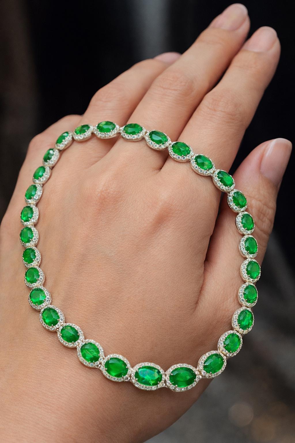 Every gemstone is carefully hand-selected for exceptional color, clarity, and brilliance. The rich green emeralds symbolize luxury, renewal, and timeless beauty, while the surrounding diamonds enhance their fire and radiance. The refined white gold setting provides a sleek, modern contrast, allowing the gemstones to take center stage.
