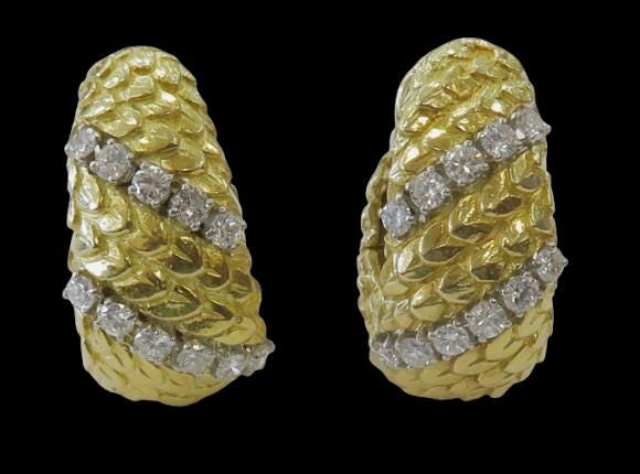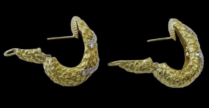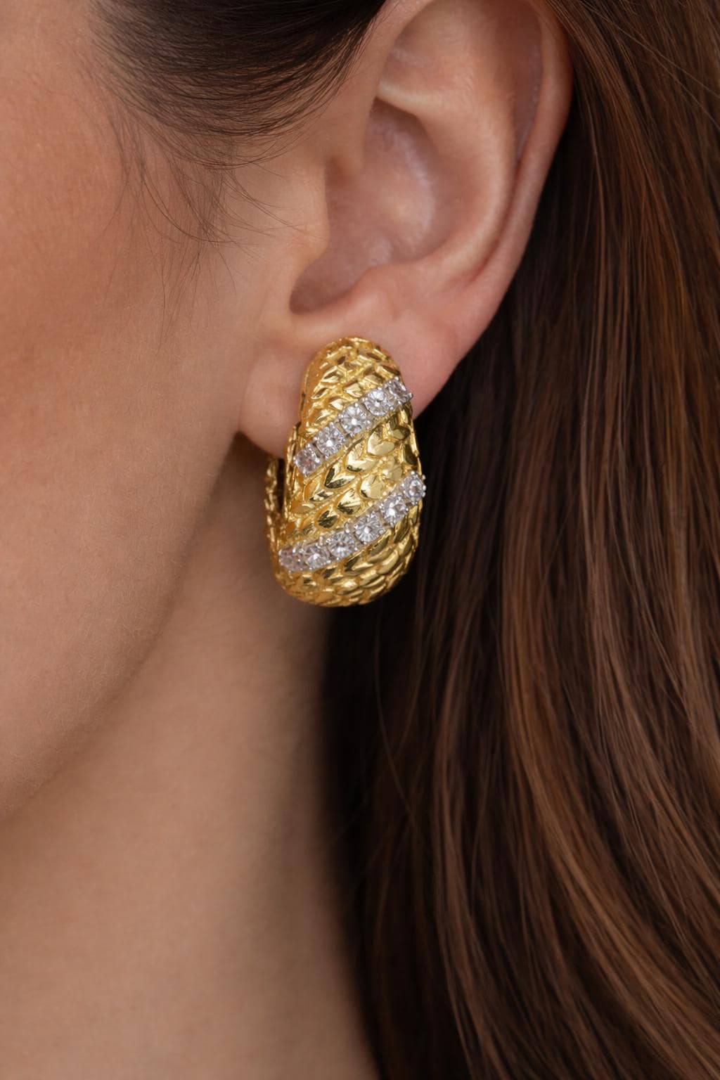 With a substantial approximate weight of 33.4 grams, these earrings offer a bold yet graceful presence, making them perfect for women who appreciate fine jewelry with enduring value. The harmonious contrast between warm yellow gold and cool platinum creates a timeless, versatile look suitable for both formal occasions and elegant everyday wear.